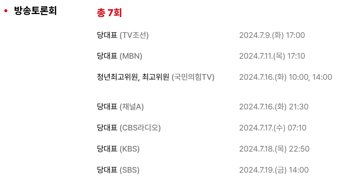 전당대회까지 남은 방송 토론회 일정과 투표 방법에 대해 바로 안내하겠습니다.