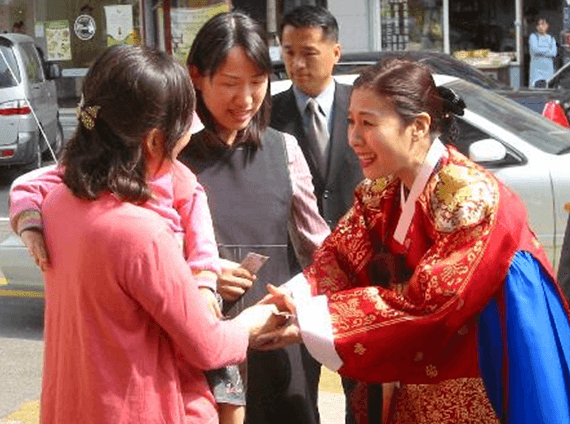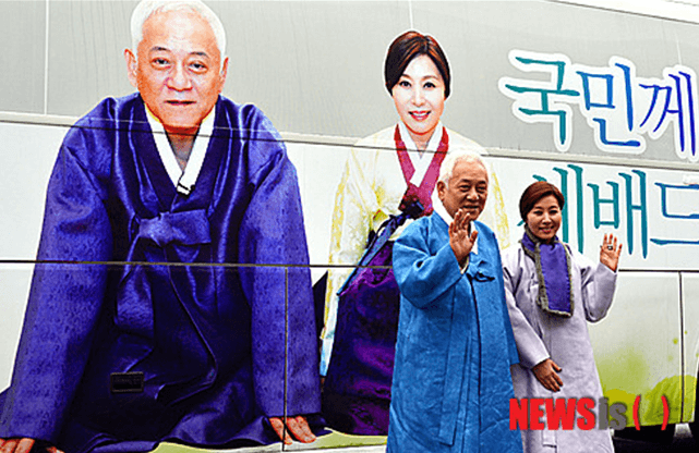 명성황후 복장으로 유세에 나선 최명길