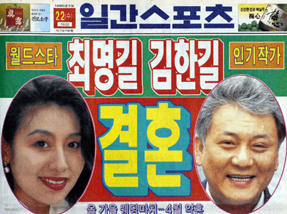 모든 일간지의 1면을 장식한 월드스타 최명길과 인기 작가 김한길의 결혼 소식은 대한민국을 충격에 빠뜨렸습니다. 당시 최명길씨는 분위기 있는 외모로 뭇 남성들을 설레게 하는 톱스타이자, 프랑스 낭트 영화제 여우주연상을 수상하며 최고 전성기를 누리고 있었습니다.
