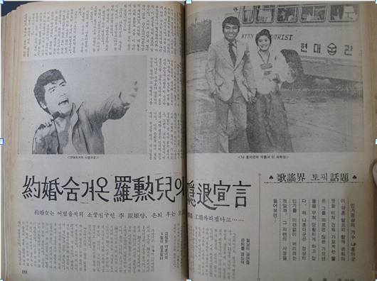 천리길, 사랑은 눈물의 씨앗, 님 그리워가 크게 히트하며 가요계 정상에 올라섰던 나훈아는 돌연 은퇴선언과 함께 약혼녀를 공개했습니다. 상대는 배우 고은아의 사촌 동생으로 나훈아와 같은 부산 출신이며 3살 연하 이숙희였습니다.