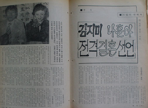 하지만 두 사람의 결혼생활은 6년 만에 파경을 맞았습니다. 이 또한 기자회견을 자처해 대국민 앞에서 이별을 선언했는데, 나훈아는 ‘소문난 김에 헤어지겠다’, 김지미는 ‘나훈아의 장래를 위해 헤어지겠다’면서 연예계 쿨한 이별의 역사로 남아있습니다.