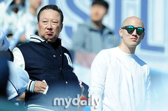 2015 한국시리즈 관람하는 박용만 박서원 부자