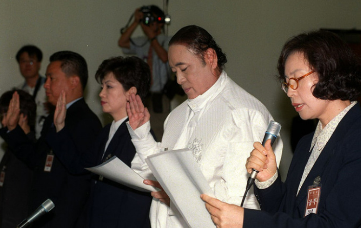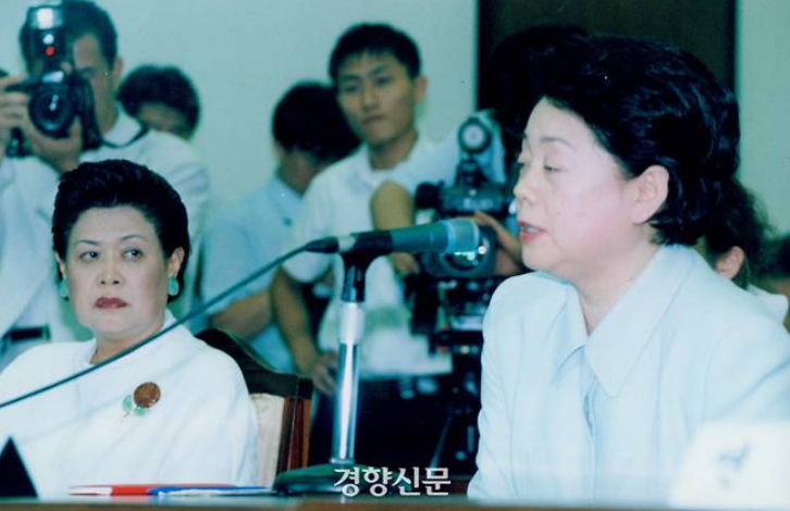 옷 로비 사건 청문회 출석한 부인 이형자
