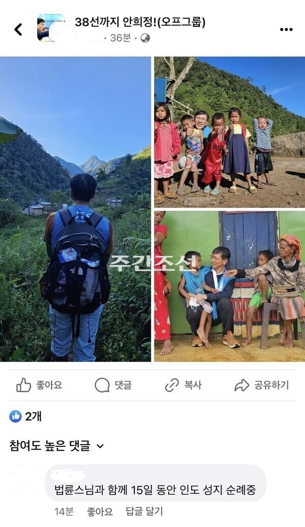 지난해 12월에는 법륜스님과 함께 필리핀을 방문해 낙후지역 초등학교를 짓는 준공식에 참석했습니다. 현지 아이들에게 학용품을 지원하는 구호 활동을 함께 한 모습이 안희정 지지자들의 페이스북을 통해 알려졌습니다.