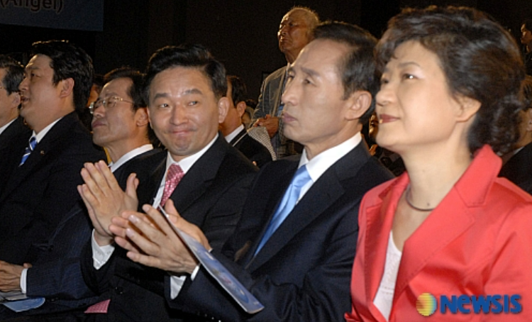 한나라당 예비 후보 시절, 이명박 박근혜를 보는 원희 (2007년)