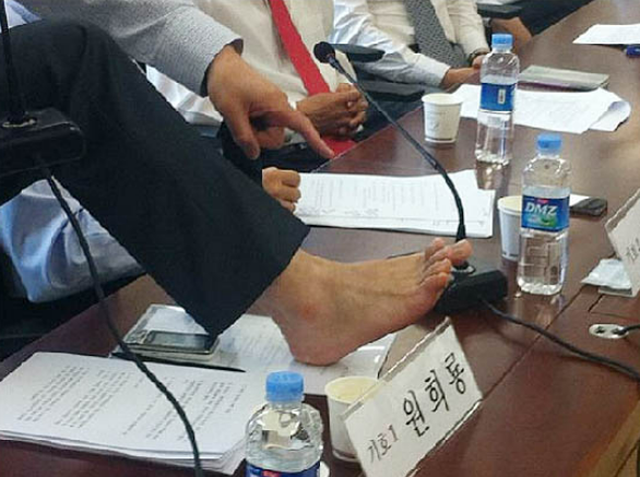 토론회에서 벗은 발을 공개한 원희룡 (2011년)