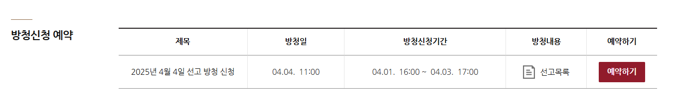 아래 버튼을 통해 지금 바로 방청 신청이 가능합니다.