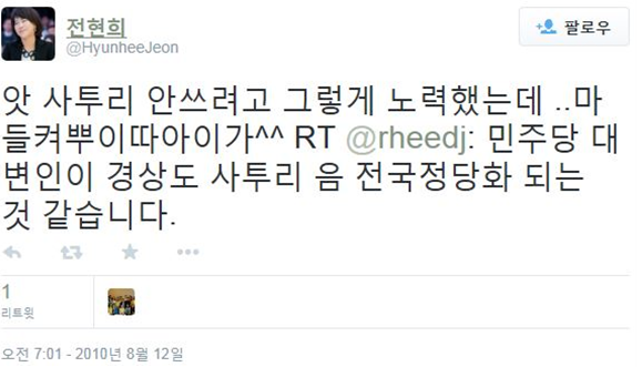 당시 박지원 원내대표는 ‘우리 당은 호남 이미지가 너무 강해서 경상도 사투리를 쓰는 대변인도 필요하다’면서 전현희를 픽한 이유를 밝혔습니다. 전현희는 고향이 경남 통영으로 고등학교까지 고향에서 다녔기 때문에 사투리 억양이 강했는데, 대변인 시절 발음에 너무 신경을 쓰다가 NG를 많이 내기도 했습니다.