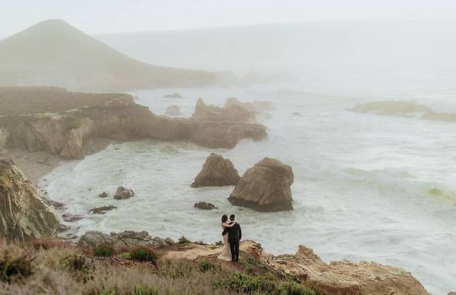두 사람은 숲과 바다 등 자연을 배경으로 웨딩 화보를 촬영했으며, 반려견으로 추정되는 강아지도 동반했습니다. 해군 출신의 최민정과 주한미군 출신 예비 신랑의 건강미가 엿보입니다.